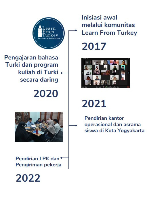 Kelasbahasaturki.id dirintis pertama kali sebagai sebuah komunitas budaya bernama learn from Turkey pada tahun 2017. Awal mulanya komunitas ini hanya membahas tentang budaya dan kuliah di Turki secara umum, namun seiring tumbuhnya tingkat ketertarikan masyarakat Indonesia terhadap negara Turki serta jaringan komunitas yang kuat saat itu, maka Arsyah Nanda kemudian bersama rekan rekannya Ahmed Stevan, Wardah Hani Nurul Izza dan Annisa Nur Hidayah sesama alumni di negara Turki memutuskan untuk mendirikan lembaga Kelasbahasaturki.id pada tahun 2020 sebagai sebuah lembaga Indonesia - Turki yang kemudian dikenal publik secara luas.